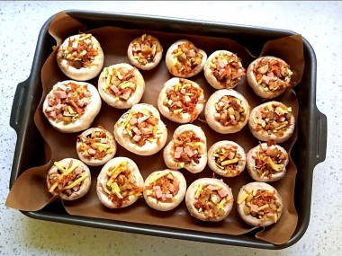 Шаг 11. Как и сколько запекать фаршированные шляпки шампиньонов в духовке?