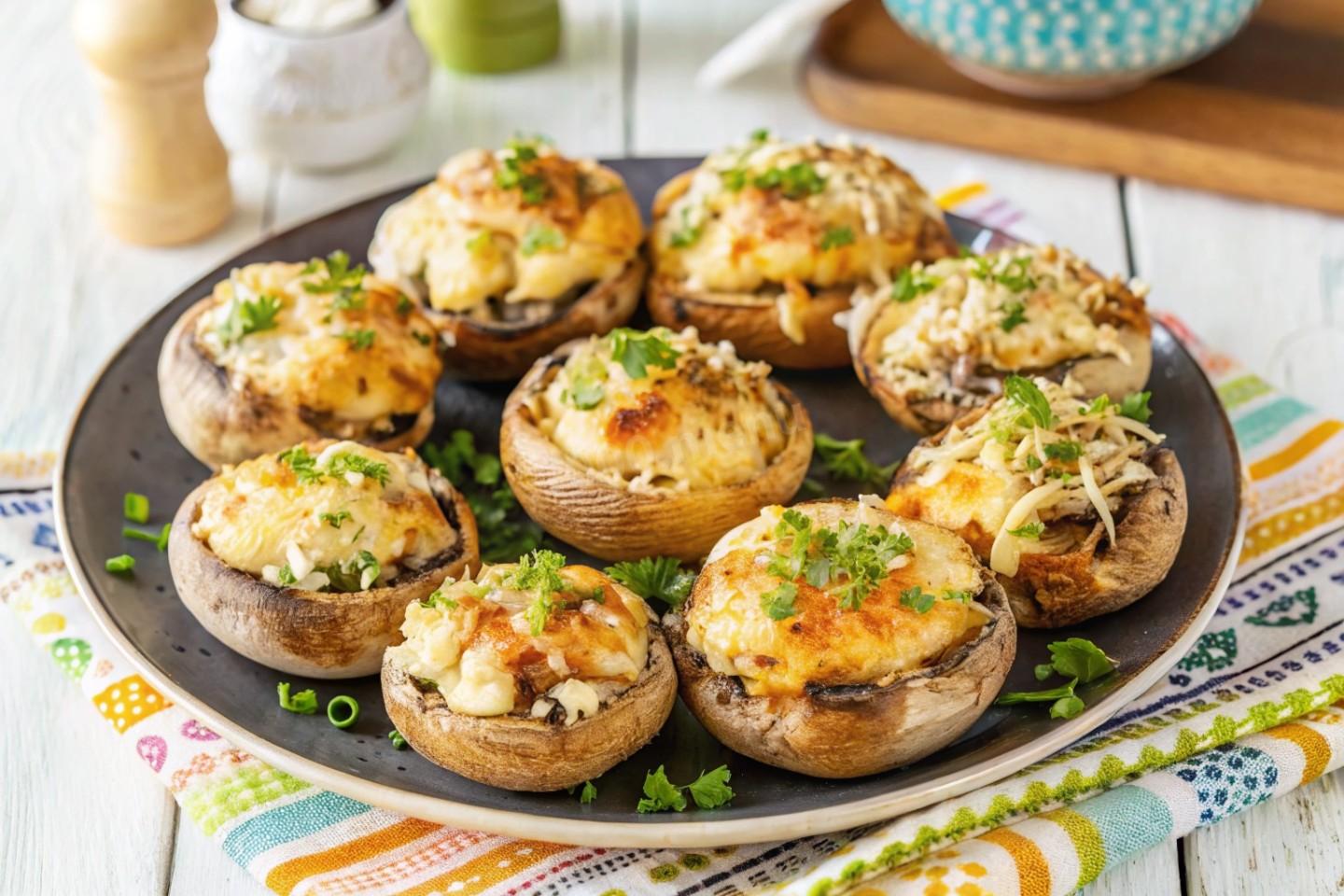 Фаршированные грибы в духовке – одно из лучших блюд для фуршета, так как их удобно есть.