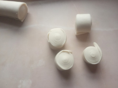 9. Сверните тесто рулетом, разрежьте на 10 частей одинакового размера, скатайте их в шарики.