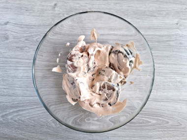 Залейте кусочки рыбы сметаной, хорошо перемешайте.