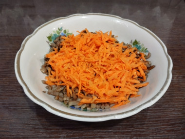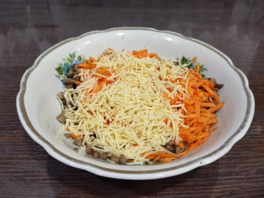 Твердый сыр натрите на средней терке и добавьте к яйцам и моркови. В салат отлично подойдет пармезан, маасдам, чеддер, эмменталь. Учтите, что чем пикантнее вкус сыра, тем интереснее получится салат.
