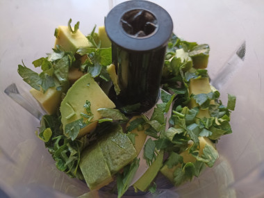 В чашу блендера добавьте почищенный авокадо. Пробейте авокадо блендером.
