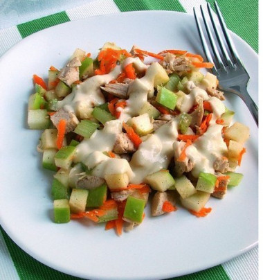 Выбрала классический салат с курицей, сельдереем и яблоком за его необыкновенный вкус и яркий, сочный вид. Мне ещё морковки захотелось немного. Это невероятно вкусно, полезно, сочно!