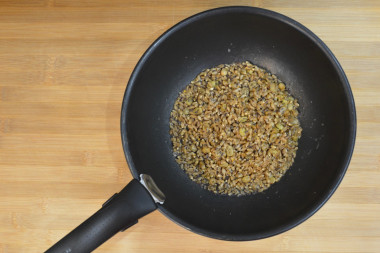 Выложите готовую пшеницу в сковороду, перемешайте. Нагрев выключите. Добавьте ложку меда, перемешайте еще раз. Кутья готова. Переложите ее в глубокую посуду горкой.