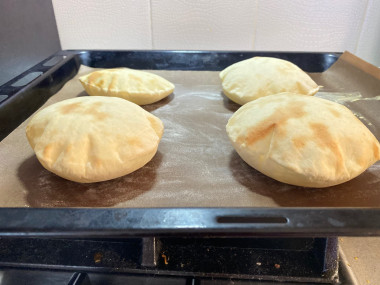 Запекала по 5 минут на 220 градусах. Это конечно чудо как питы надуваются в духовке. Вот правда одна не полностью вздулась, видимо в том месте толстовато раскатала.