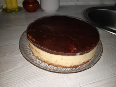 Сверху равномерно распределите суфле. Накройте вторым коржом и слегка примните. Поставьте торт на 8 часов в холодильник.
