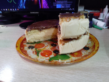 Готовый корж охладите и разрежьте вдоль на 2 части.