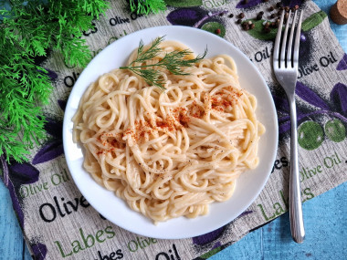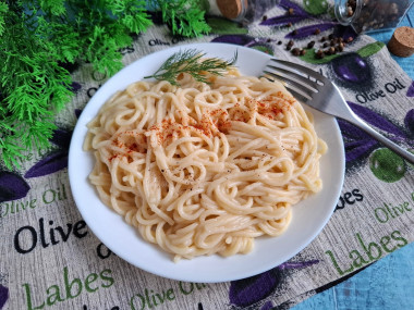 Макароны с сыром я готовила часто, но это блюдо совсем другое. Думаю, вся изюминка в добавлении отвара. Благодаря этому спагетти получились сочными!