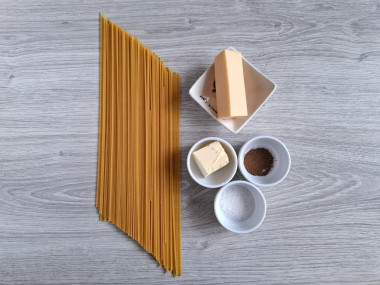 Как приготовить пасту качо э пепе? Подготовьте все продукты по списку. Я рекомендую использовать свежемолотый перец, так как он более ароматный. Для этой пасты лучше всего подходит сыр Пекорино или Пармезан. Я использую Пармезан. Важно, чтоб сыр был хорошо плавился и был качественным. Все о том, как заменять различные виды сыров читайте в статье, ссылка под рецептом.