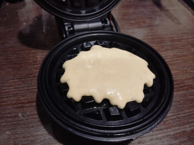 Электровафельницу предварительно разогрейте. Выложите немного теста. Закройте крышку прибора и выпекайте вафли примерно 5 минут до золотистого цвета. Температура нагрева для каждой модели вафельницы индивидуальна. Поэтому точное время приготовления для вашего прибора можно установить только опытным путем.