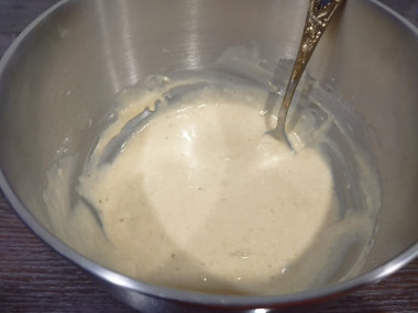 Перемешать миксером на низкой скорости до однородности. Тесто должно получиться полугустое и текучее.