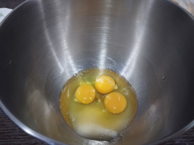 В миске соедините яйца и сахар и взбейте миксером до однородности. Обязательно мойте яйца перед использованием, так как даже на кажущейся чистой скорлупе могут находиться вредные бактерии. О том, какие яйца лучше выбрать читайте в статье, ссылка од рецептом.
