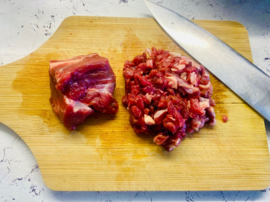(Подмороженное мясо легче нарезать мелкими кусочками)