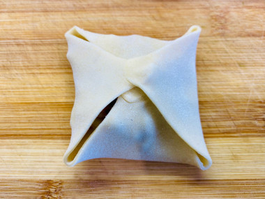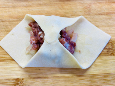Можно приступать к лепке мантов удобным для вас способом. Тесто раскатайте очень тонко. Правильно замешанное тесто хорошо раскатывается, не липнет к столу и не требует добавления муки на подпыл. С разными способами формирования мантов можно ознакомиться в конце рецепта.