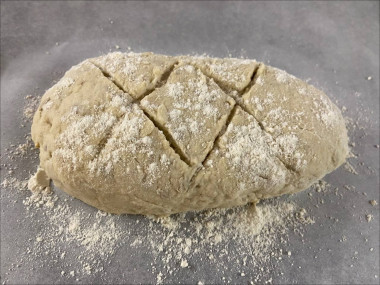 Сформируйте из теста форму хлеба — неправильный круг или овал с надрезами на верхней поверхности.