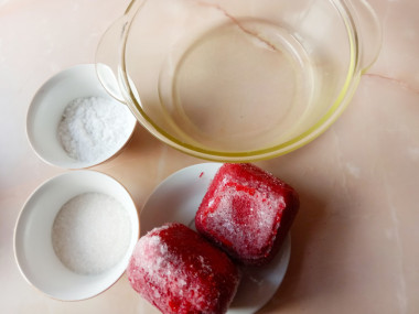 Встретился мне на сайте рецепт киселя из клубники. По соотношению жидкости и крахмала поняла, что это будет густой кисель, скорее десерт, чем напиток. Решила попробовать приготовить такой непривычный для меня вариант. Сейчас зима, но летом я клубнику ,с небольшим добавлением сахара, измельчала блендером и замораживала. Достала 500 г замороженного ягодного пюре ( на пробу для первого раза готовила половину нормы киселя) . К клубничному пюре добавила ещё немного малинового))). Воду с сахаром довела до кипения, добавила подтаявшее пюре, всё вместе ещё раз довела до кипения и влила при постоянном помешивании растворенный в прохладной кипяченой воде крахмал. Не прекращая помешивать , держала кисель на огне пока он не начал "пыхтеть", закипая. Сняла с огня, разлила по формочкам. Охлаждённый кисель можно подавать с долькой лимона( для любителей кисленького) или присыпав сахарной пудрой ( для сладкоежек) . Получился ароматный, густой, вкусный десерт. Спасибо, kontaty!