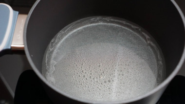 В большой кастрюле доведите до кипения 1 стакан воды и сахар. Снимите с огня полученный сироп.
