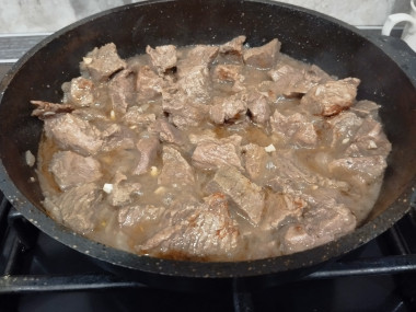 Тушите мясо еще около часа. Не забывайте следить за уровнем воды, при необходимости подливайте ее.