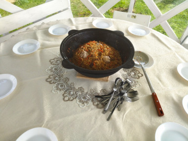А здесь сложились карты - 9 мая, вся семья в сборе, ветер очень сильный (шашлык не сделать) и решили приготовить плов.