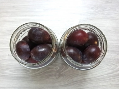 Сливы я хорошо помыла от налета и обтерла чистым полотенцем. Банки простерилизовала над паром, а крышки прокипятила.