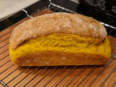 Как же я люблю тыкву! Больше неё мое сердце занимает только хлеб. А какое чудо рождает их сочетание! Я даже не смогла дождаться, пока он остынет, поломала - а только поломать и получилось - своим тупым ножом. Хрустящая корочка и супермягкий нежный мякиш...
