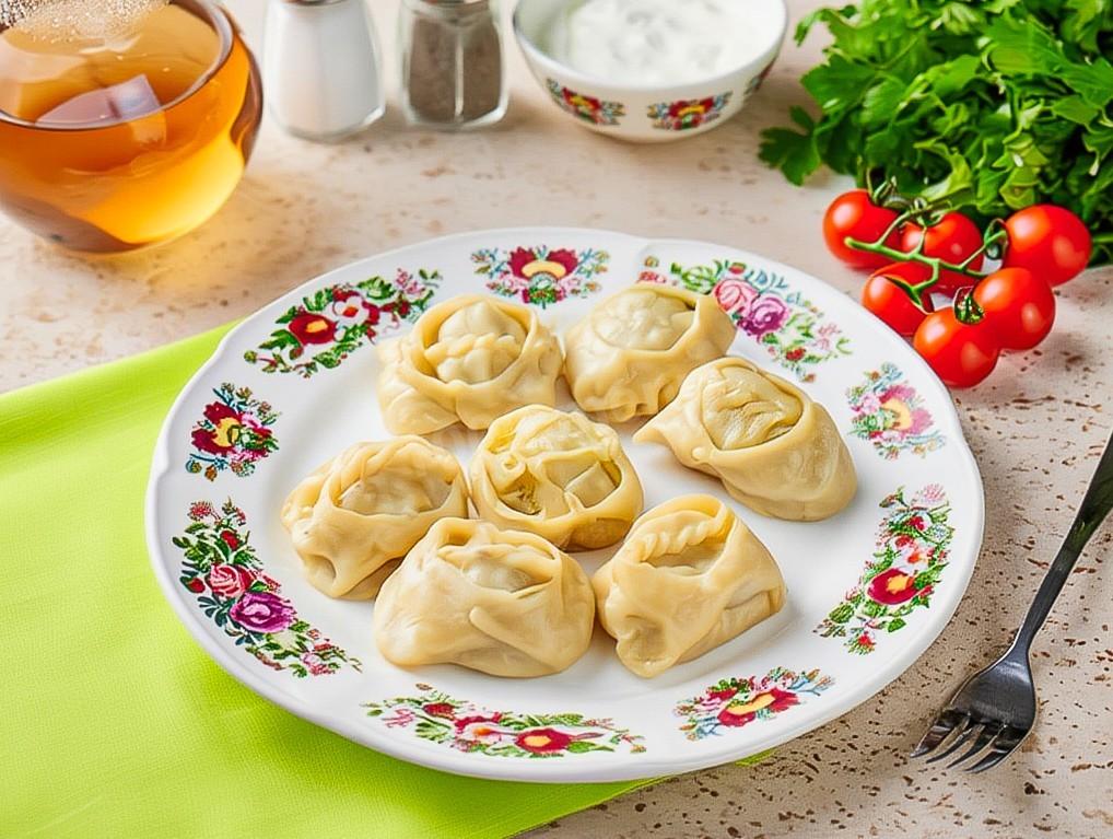 Манты с картошкой и луком, приготовленные на пару, — это полезный источник сложных углеводов, клетчатки и витаминов без холестерина. Они идеально подходят для вегетарианского питания и легко усваиваются, особенно если подавать их с лёгким соусом, например, на основе йогурта.
