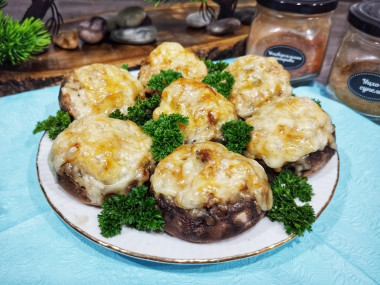 В качестве закуски на праздничный стол приготовила шампиньоны, фаршированные в духовке с фаршем и сыром. Блюдо получилось невероятно ароматным и вкусным. Шампиньоны стали ещё более аппетитными после запекания, а сыр добавил приятную пикантность. Единственное,что я не использовала,это кабачки. Но и без них грибочки получились сочными.