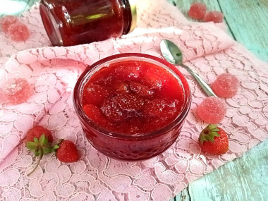 Клубничный конфитюр по этому рецепту получился просто восхитительный. До сих пор как бы я ни пыталась варить что-то из клубники, она у меня постоянно разваривалась. А тут смотрите, какие ягодки получились, восторг! Это как раз водка творит такие чудеса, я думаю. Спасибо за рецептик, теперь конфитюр из клубники буду готовить только так!