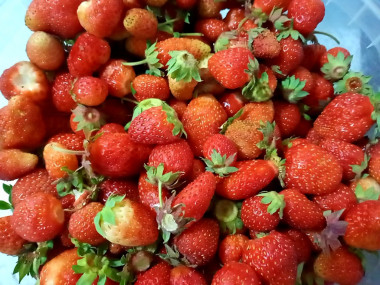 Ягоды домашней клубники тоже всегда заливаю водой, а потом выбираю их с поверхности. Весь песок оседает на дно. Но на долго оставлять клубнику в воде не стоит, чтобы она не размокла.