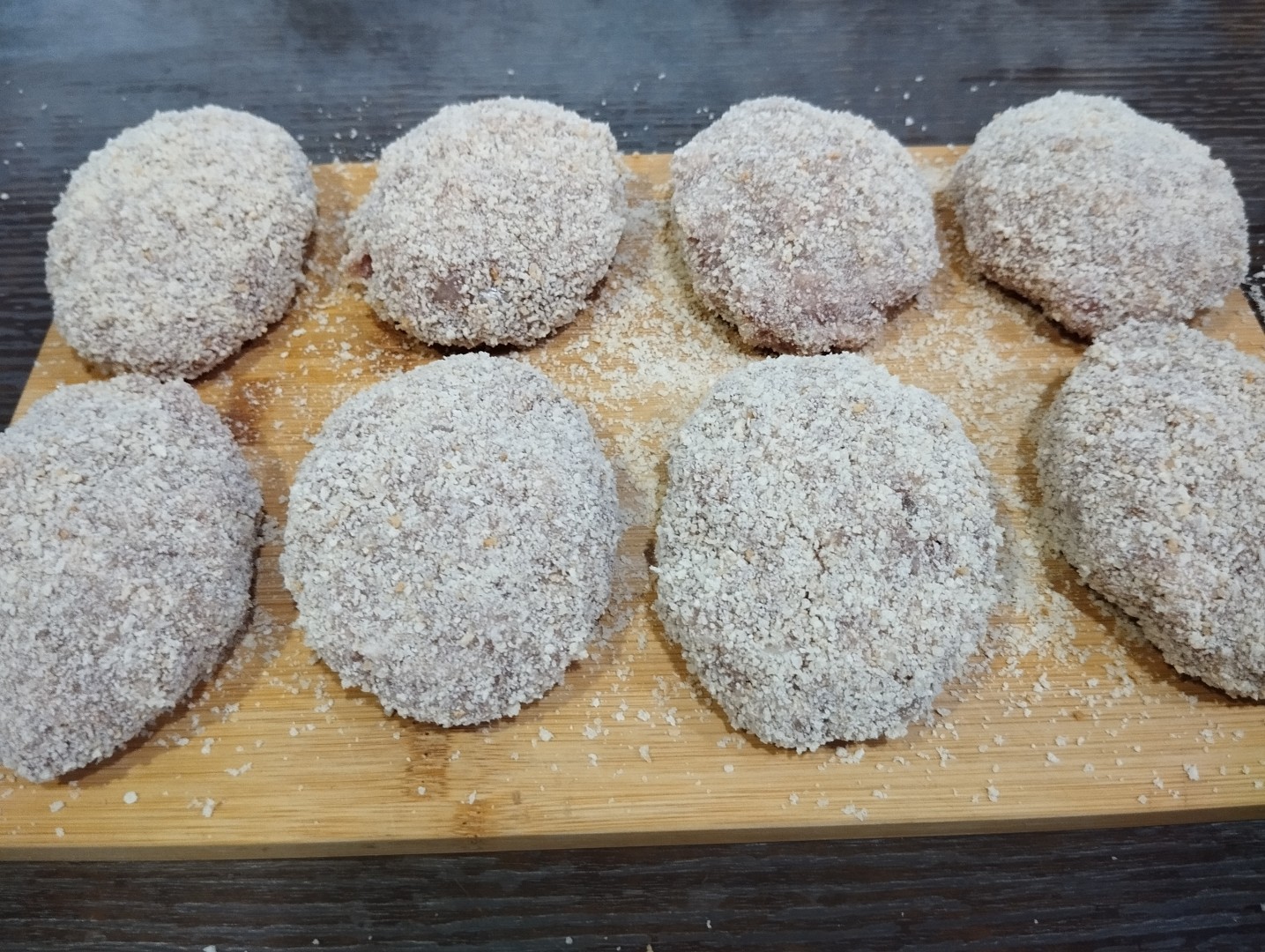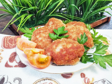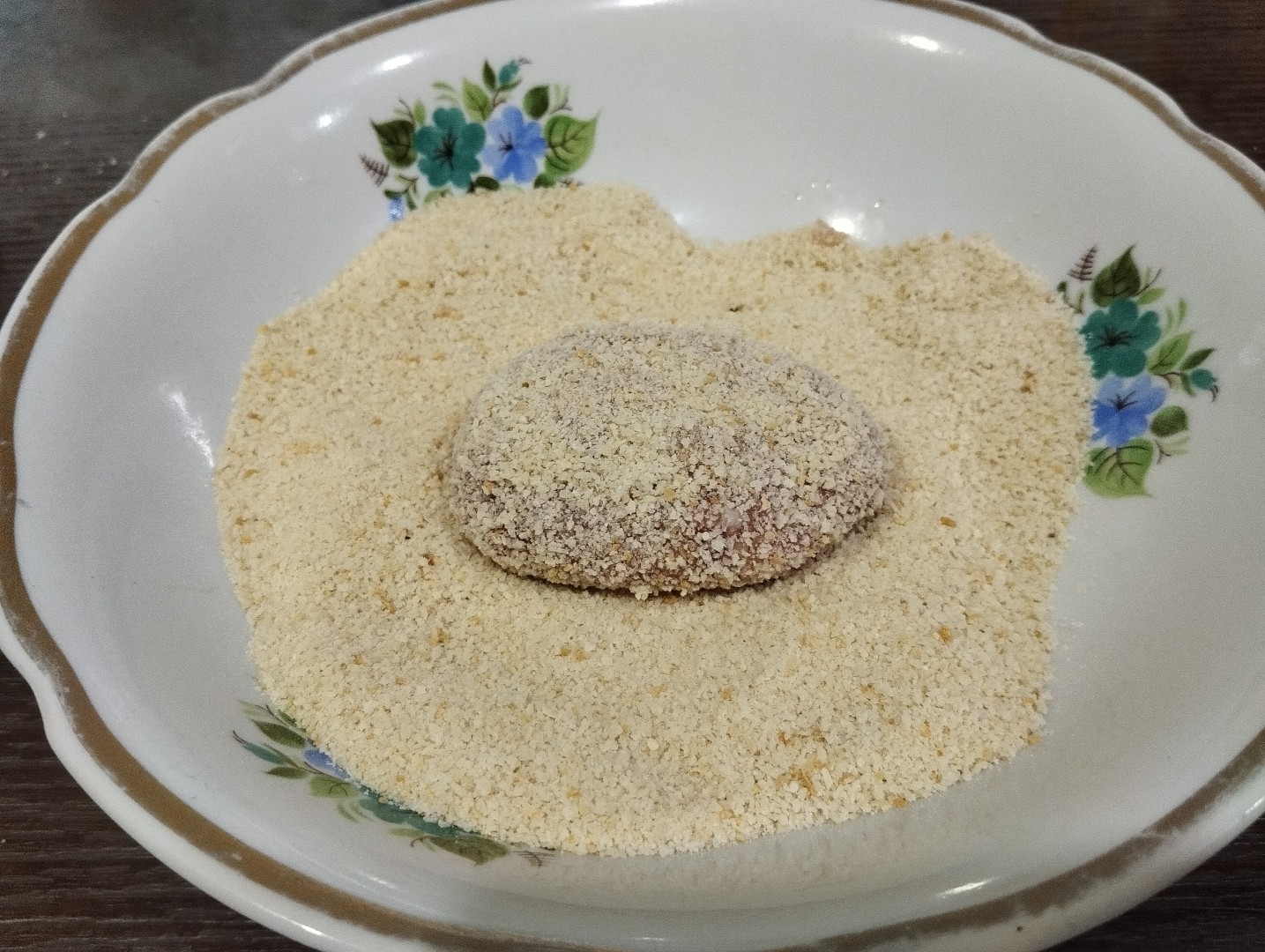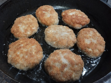 Сформировала котлеты, обваляла в панировочных сухарях и обжарила на сковороде с двух сторон до золотистой корочки.