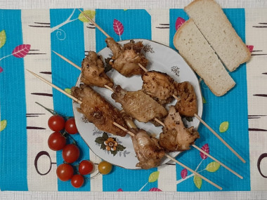 Конечно, это не шашлычок на природе, однако тоже дело. Мясо пропеклось, а поскольку было маринованное, то и вкус весьма шашлычный был. для достоверности нанизала на шпажки