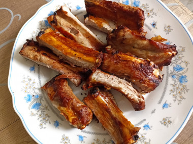 Рёбрышки выложите на решётку, смазанную растительным маслом, и обжаривайте, периодически переворачивая, до готовности.