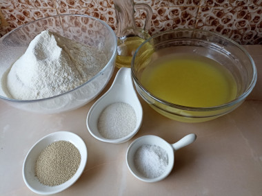 Смешиваем сухие и жидкие ингредиенты: к муке с дрожжами вливаем отвар с солью и сахаром, добавляем растительное масло. Замешиваем тесто - вымешиваем до тех пор, пока не перестанет липнуть к рукам