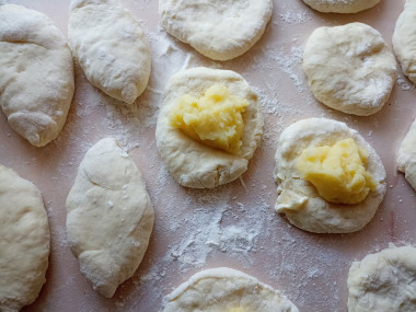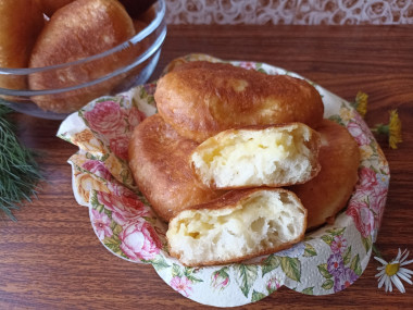 Приготовила жареные дрожжевые пирожки из теста на картофельном отваре. Сначала сварила картофель до готовности, два стакана отвара оставила остывать до теплого состояния. Картофель потолкла и добавила к нему обжаренный репчатый лук. Тесто замесила по рецепту автора ( муки у меня ушло немного меньше и сахара я положила только одну столовую ложку) , получилось оно мягким, не липким. Пока тесто подходило, картофельная начинка успела остыть. Сформировала пирожки,накрыла их полотенцем для подъёма ( минут на 10-15). При жарке пирожки становятся ещё пышнее. Тесто- выше всяких похвал! Пирожки получились с нежной хрустящей корочкой, а внутри мягкие и воздушные. Рекомендую обязательно приготовить. Спасибо автору за рецепт!