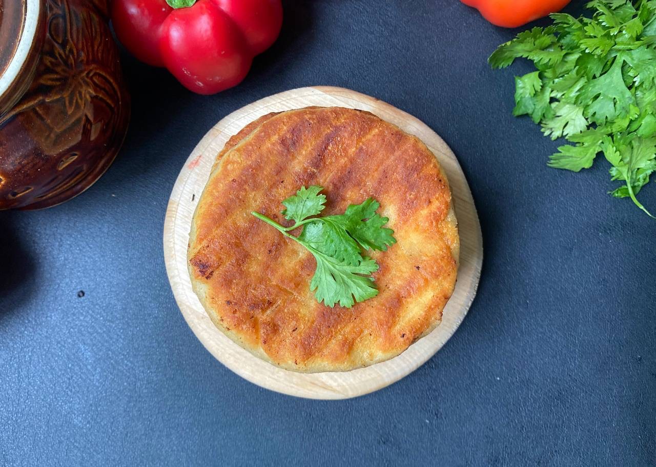 Переверните лепешку на другую сторону. Убавьте немного нагрев и обжарьте лепешку до румяности с другой стороны. Время приготовления будет зависеть от особенностей работы вашей плиты.