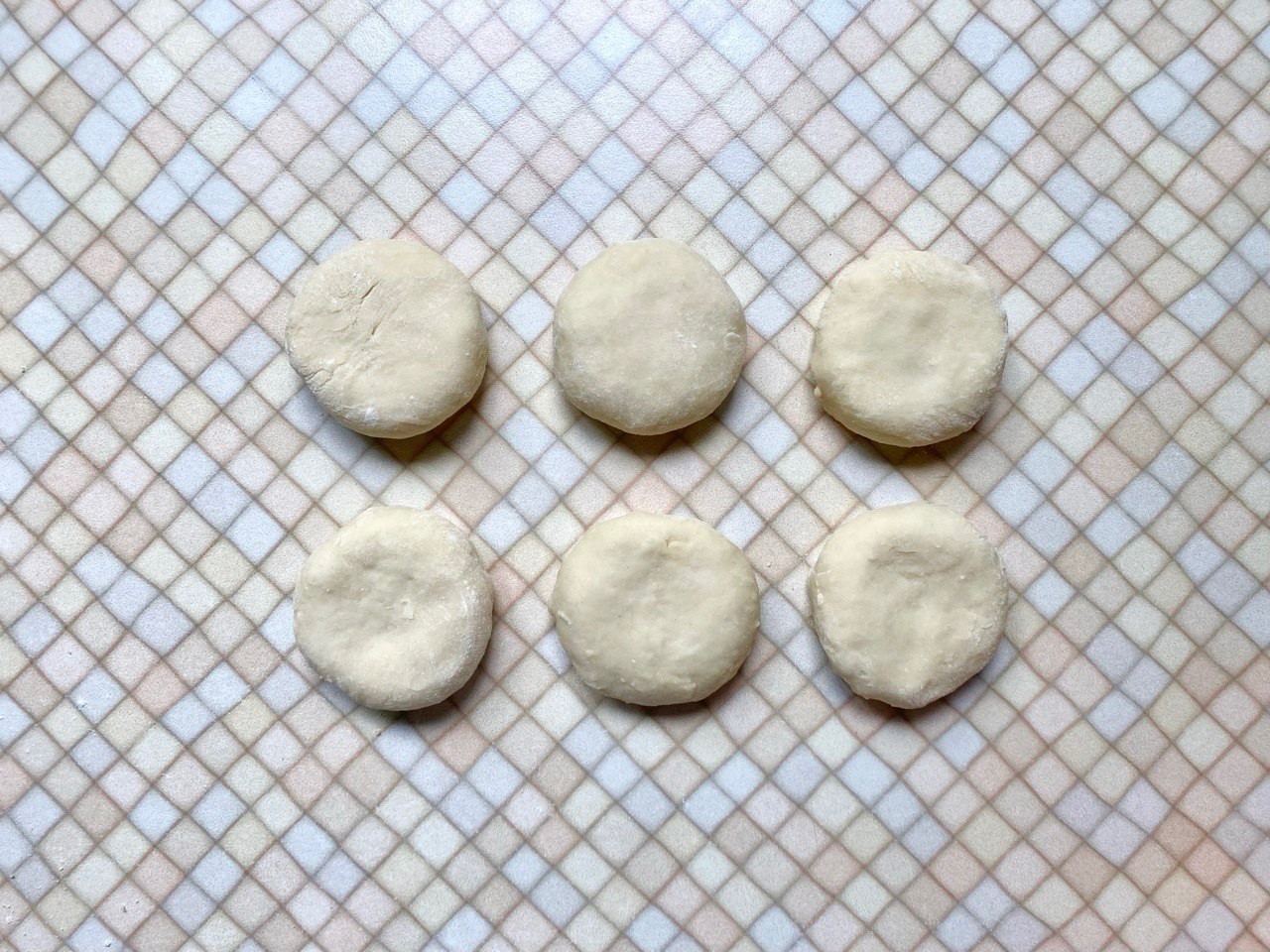 Тесто разделите на равные части. Я разделила на 6 частей.