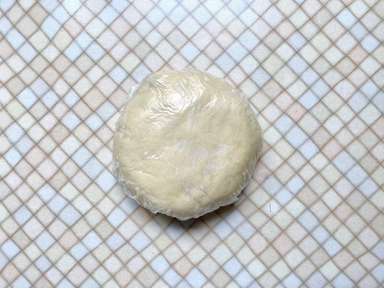 Тесто получается нежное и мягкое. Заверните тесто в пищевую пленку и оставьте на столе на 30 минут. Клейковина хорошо разовьется, и тесто станет очень эластичным, податливым и приятным в работе.