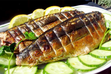 Запекайте скумбрию, периодически переворачивая решётку, до готовности (на это уйдёт примерно двадцать- тридцать минут). Жар в мангале не должен быть сильным, иначе есть вероятность того, что нежная шкурка рыбы сгорит, а мясо внутри останется сырым.