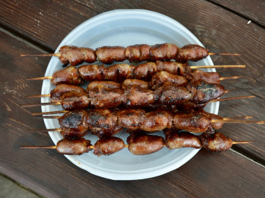 Просто восторг! Безумно вкусный шашлык из куриных сердечек на мангале. В прямом смысле слова шашлык, который очень сложно отличить по вкусу от куска мяса. Только готовится гораздо быстрее, ножом резать не нужно, а вкус... Не передать словами! Вся семья оценила блюдо по достоинству. Это очень непривычный для нас способ приготовления сердечек, раньше мы их только тушили. Теперь будем готовить такой шашлык из куриных сердечек на мангале ещё не один раз. Большое спасибо автору за рецепт!