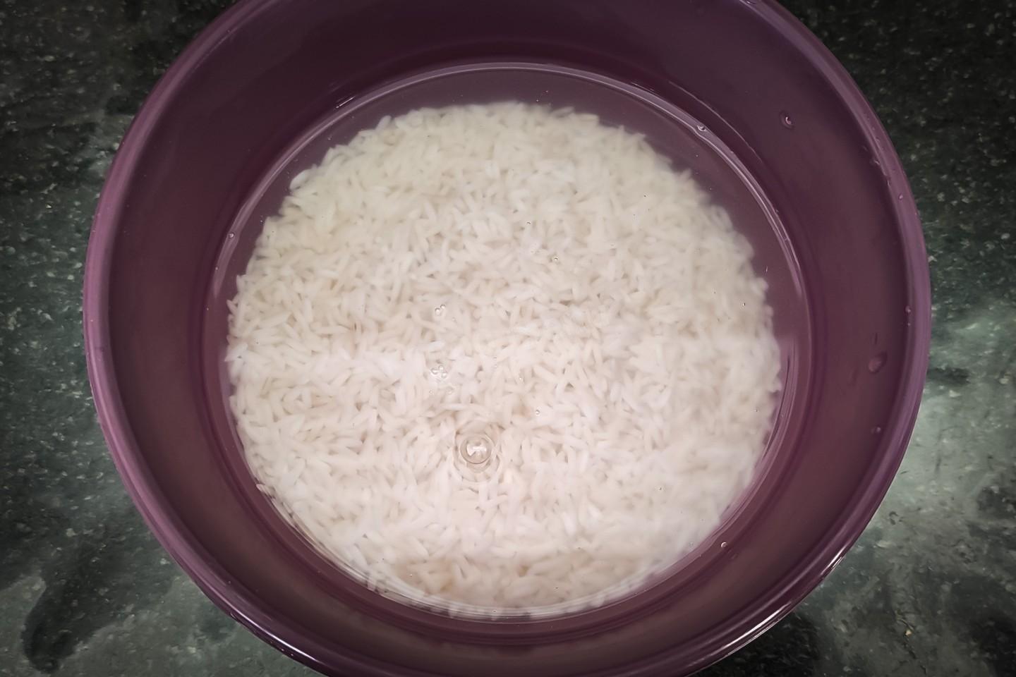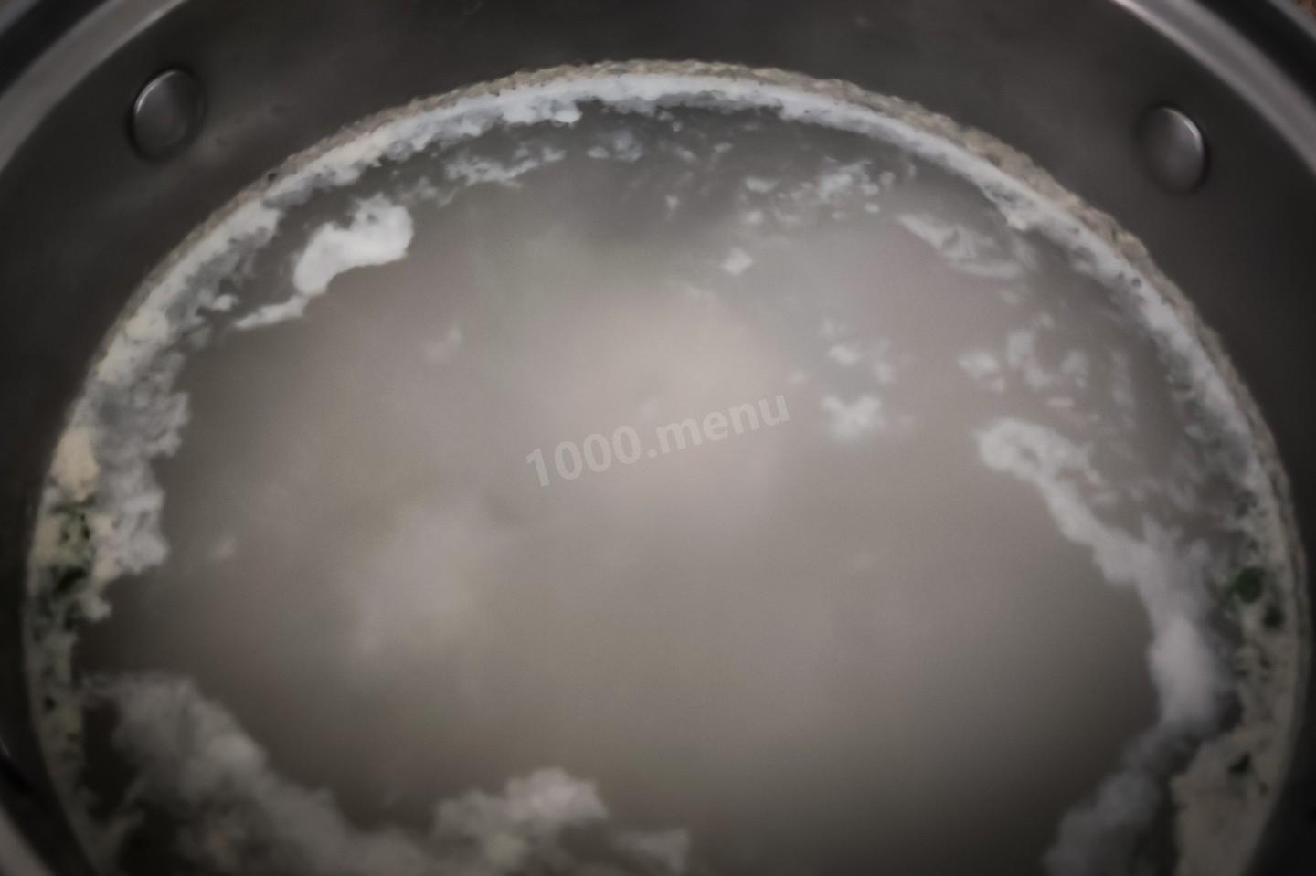 Рис необходимо подготовить с варке. Для этого всыпать его в чашку, залить водой и промыть, в процессе промывания вода примет молочный цвет. Надо слить воду, залить новую и снова промыть. Так продолжать до тех пор, пока вода не станет прозрачной. Такую процедуру повторить 6-7 раз. Пока промывается рис, нужно поставить кипятить воду. Когда вода закипит, пересыпать в неё рис и варить до полуготовности минут 10.