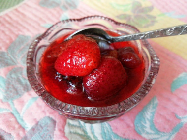 На следующий день клубничка, пропитавшись сиропом, приобрела классический вкус настоящего варенья.