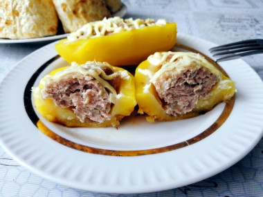 Начиняла лодочки свиным фаршем с добавлением лука, соли, приправы для мяса, а также сметаны (для сочности). Сверху покрыла каждую небольшим количеством сметаны. Сыр добавлять не стала.