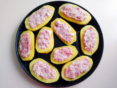 Заполните наши лодочки начинкой из фарша.
