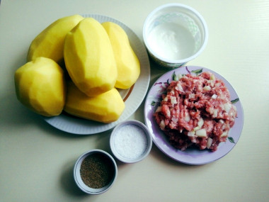Как сделать картофельные лодочки с мясным фаршем и болгарским перцем? Подготовьте все необходимые ингредиенты.