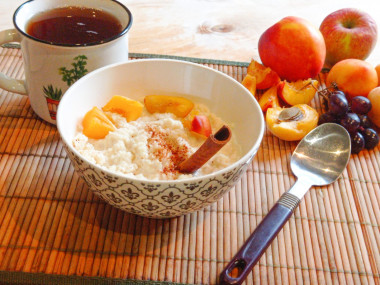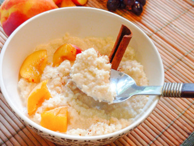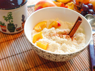 Каша из кускуса с молоком готова. Посыпаем ее сверху молотой корицей и порошком имбиря. Это также по желанию. Украшаем кусочками фруктов - подойду бананы, спелые груши, дольки мандаринов. Также можно добавить к каше любимые сухофрукты, ягоды (идеально - клубнику, чернику, землянику, жимолость, малину), измельченные орешки или семена. Добавки не только сделают вкус каши ярче, но и само блюдо в целом будет питательнее и полезнее.