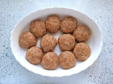 Сформируйте из фарша колдуны любой желаемой формы. У меня получилось 11 колдунов. Выложите колдуны в форму для запекания. С выбором формы поможет статья по ссылке в конце рецепта. Включите духовку разогреваться на 180 С.