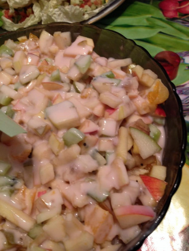 Ирина, приготовила Ваш салатик, только добавила еще яблок немного(мои их очень любят), всем очень понравился, сметана со сгущенкой так улучшила вкус, что я и представить себе на могла о таком результате, спасибо, райское наслаждение получила!