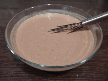 Добавьте растительное масло и перемешайте до однородного, жидкого теста. По консистенции оно должно напоминать молочный коктейль. Какое растительное масло лучше всего подойдет для этого рецепта можно прочитать, пройдя по ссылке под шагами ниже.