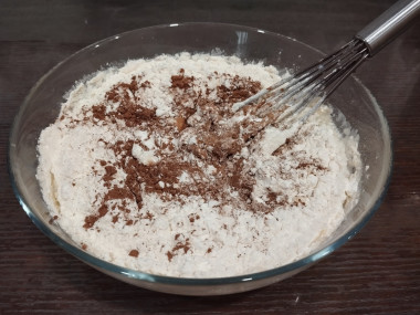 Просейте в миску с мукой и яйцами какао, влейте половину молока и перемешайте венчиком до однородности. Какое какао лучше всего взять и чем отличаются разные виды можно узнать в статье под рецептом ниже.