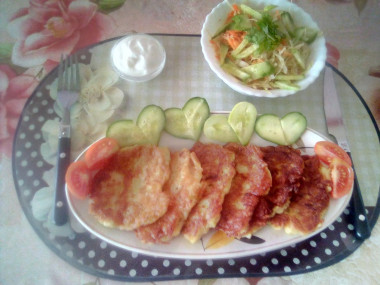 Кабачковые оладки получились вкусные, и нежные внутри.
